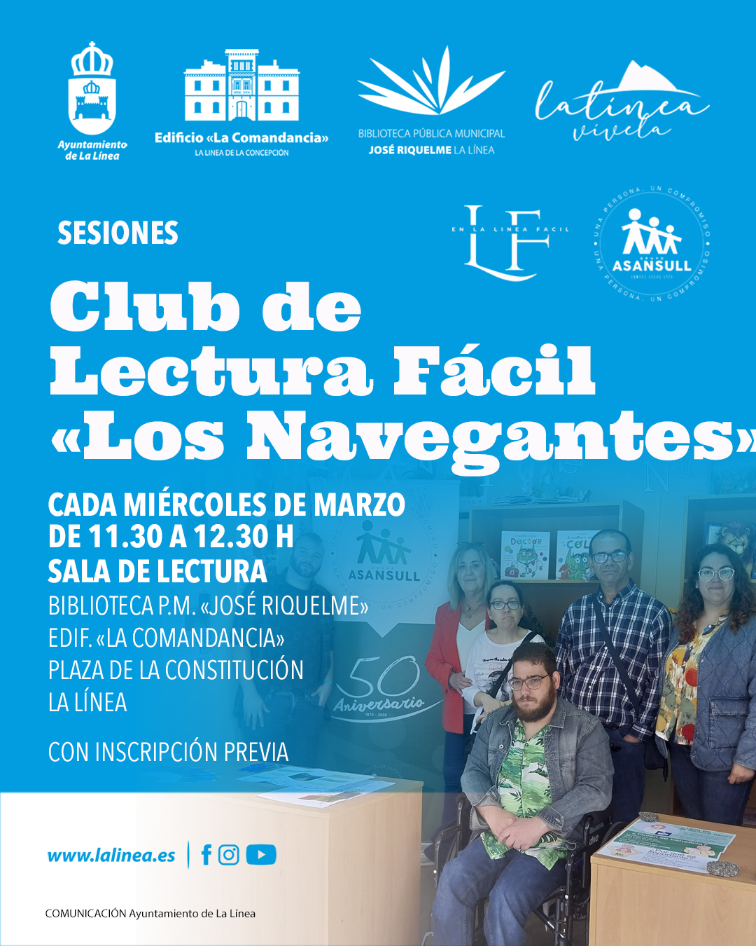 4, 11, 18 y 25 de Febrero: De 11:30 a 12:30 h.: Sesiones del Club de Lectura Fácil “Los Navegantes”. Sala de Lectura. Con inscripción previa.
