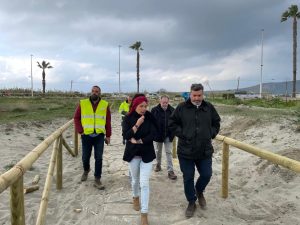 La concejal de Medio Ambiente, Raquel Ñeco, ha acompañado al jefe de la Demarcación de Costas Andalucía-Atlántico, Patricio Poullet, en una visita de inspección a las obras de protección y regeneración del sistema dunar de Sobrevela. Este proyecto, ejecutado y financiado íntegramente por la Demarcación de Costas, dependiente del Ministerio para la Transición Ecológica y el Reto Demográfico, representa una inversión estatal de 430.000 euros destinada a salvaguardar uno de los ecosistemas litorales mejor conservados de la zona.