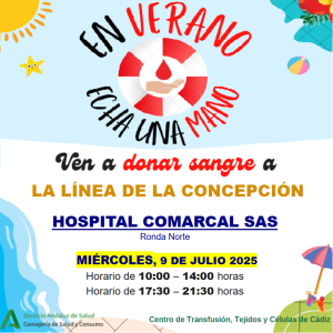 La Línea de la Concepción acogerá una nueva jornada de donación de sangre el próximo miércoles, 9 de julio. La campaña, que busca reforzar las reservas sanguíneas durante el periodo estival bajo el lema ‘En verano, echa una mano’, invita a la ciudadanía a participar activamente en este acto altruista.