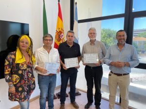 El Ayuntamiento de La Línea de la Concepción ha expresado su gratitud a los creadores de la escultura ‘Más linense que un volaó’, una obra que enriquece el paisaje urbano de la ciudad. El alcalde Juan Franco, acompañado por la concejal de Cultura, Raquel Ñeco, entregó diplomas de agradecimiento a Sylvain Marc, su hijo Iván Marc, y Miguel Ángel Paniagua de Promociones Paniagua, responsables de esta pieza escultórica ubicada en la calle Jardines.