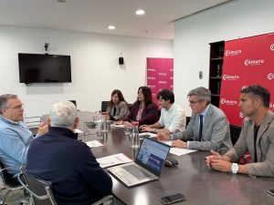 El teniente de alcalde y vicepresidente de la Diputación de Cádiz, Sebastián Hidalgo, y la concejal de Desarrollo Estratégico, Yolanda Fernández Borastero, han mantenido una reunión de trabajo con el presidente de la Cámara de Comercio del Campo de Gibraltar, Carlos Fenoy, y su equipo técnico. El encuentro, que ha contado con la participación de personal de la delegación municipal de Desarrollo Estratégico, ha tenido como objetivo principal establecer las bases de colaboración para concurrir a las próximas convocatorias de la Fundación Incyde, orientadas a la creación de espacios de coworking y viveros de empresa.