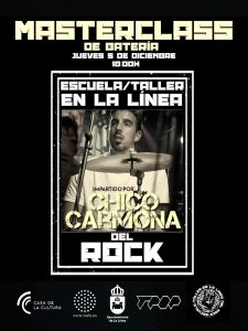 El Salón de Actos de la Casa de la Cultura de La Línea albergará este jueves, 4 de diciembre, a las 18.00 horas, una clase magistral de batería de acceso gratuito. El evento se integra en la programación del taller ‘En La Línea del Rock’.