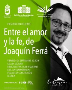 Este viernes, 6 de septiembre, a las 12.00 horas, se presentará en la Biblioteca Municipal José Riquelme, el nuevo libro publicado por Joaquín Ferrá, ‘Entre el amor y la fe’, una novela en la que se dan cita personajes utilizados en anteriores obras, con una trama de ciencia ficción que mezcla lo sobrenatural y lo terrenal.