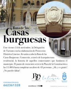 La delegación municipal de Turismo anuncia la celebración de una nueva edición de la Ruta de Casas Burguesas, una visita guiada destinada a la ciudadanía y a visitantes con el objetivo de difundir el patrimonio histórico y arquitectónico de la localidad.