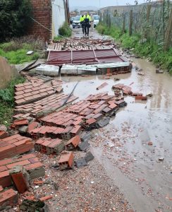 El fuerte temporal de lluvia a lo largo de la pasada noche y la mañana de hoy ha provocado también incidencias en lo relativo a postes del alumbrado y señales de tráfico, caídas de ramas en distintos puntos y dos balcones con riesgo de desplomes, que han sido saneados por efectivos de Bomberos.