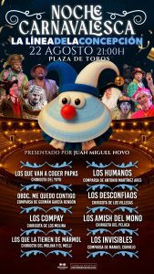 La delegación de Fiestas anuncia la celebración de la Noche Carnavalesca de La Línea de la Concepción el próximo 22 de agosto, en la Plaza de Toros El Arenal, a las 21.00 horas.