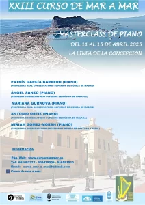 La Sociedad Musical Felix Enríquez, con la colaboración de la delegación de Cultura y el Conservatorio de Música Muñoz Molleda, ha organizado una nueva edición del Curso de Mar a Mar, que este año cumple su 23 ª edición. Se celebrará del 11 al 15 de abril con una Masterclass de piano, dirigida por profesionales de distintos puntos del país.