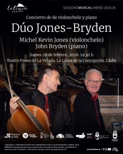 La Sociedad Musical Linense “Félix Enríquez” ha programado para el 26 de febrero su segundo concierto didáctico de este año, a cargo del dúo compuesto por Michel Kevin Jones (Violonchelo) y John Bryden (Piano). Se celebrará en el teatro Paseo de La Velada, con entrada gratis para socios y alumnos del Conservatorio de Música Muñoz Molleda.