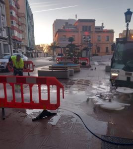 Estas labores requieren el uso de equipos especializados y para ello, los servicios municipales están empleando sistemas de agua a presión en caliente dotados de cúpulas específicas para el tratamiento de superficies, lo que permite la extracción del material adherido sin dañar el mobiliario urbano ni el propio pavimento.