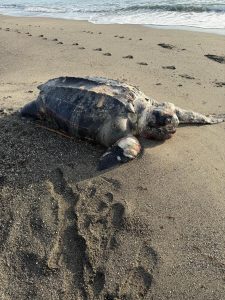 Operarios de la delegación municipal de Playas, que dirige el concejal Rafael León, han retirado del litoral de levante, concretamente en la zona de Torrenueva, un ejemplar muerto de una tortuga laúd, de unos dos metros de envergadura.