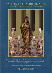 Mañana viernes, 15 de agosto, Solemnidad de la Asunción de la Virgen María, tendrá lugar la Salida Extraordinaria de la Inmaculada Concepción con motivo del Centenario de su Patronazgo sobre nuestra ciudad.