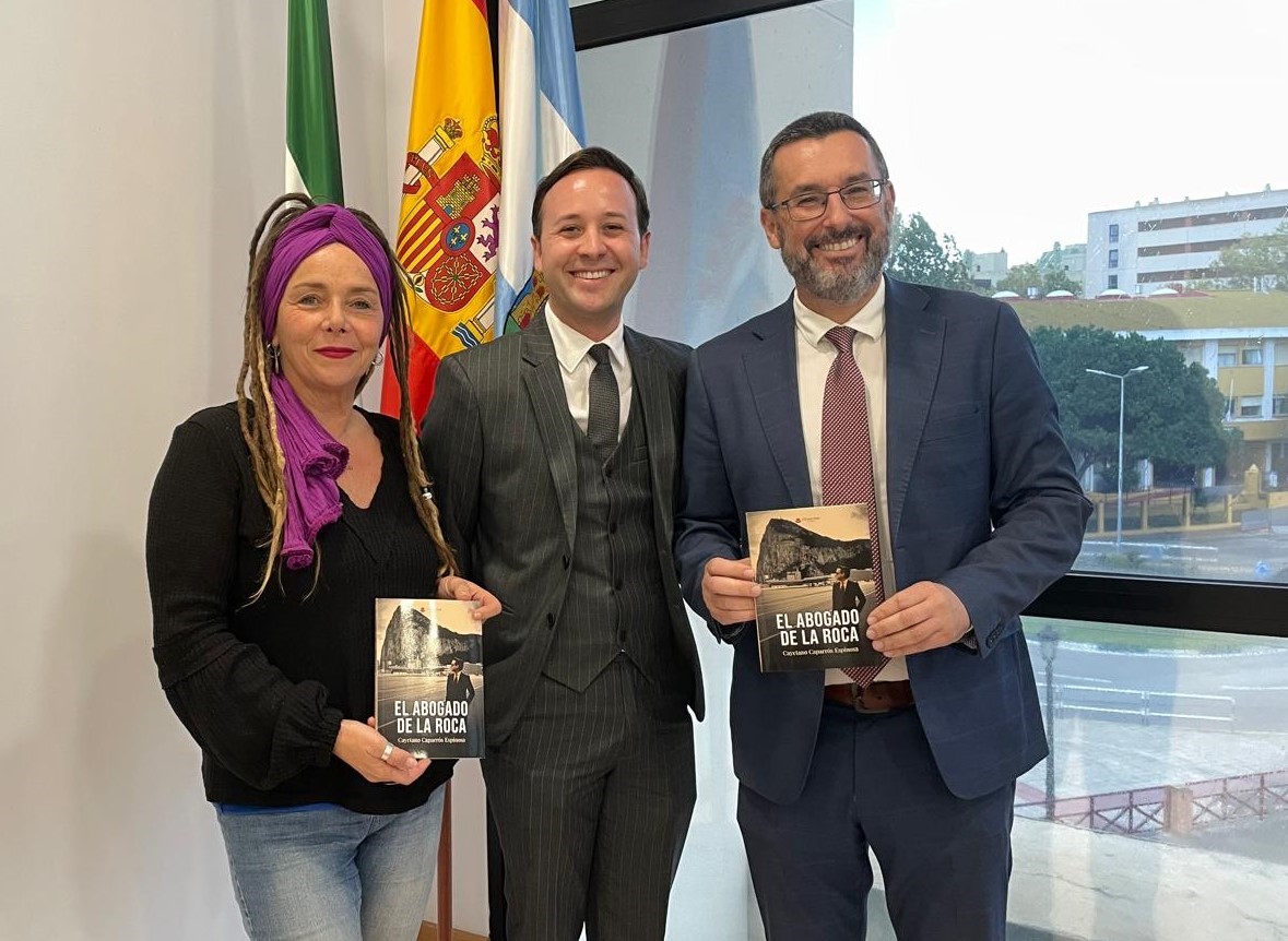El alcalde de La Línea de la Concepción, Juan Franco, y la concejal de Cultura, Raquel Ñeco, han recibido al letrado, Cayetano Caparrós, con motivo