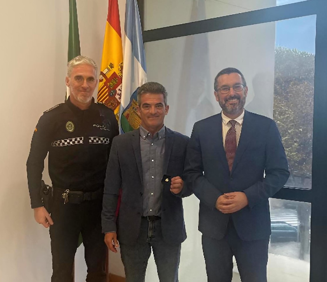 El alcalde de La Línea de la Concepción, Juan Franco, ha recibido al agente de la Policía Local, Alfredo Pacheco, que tras 31 años de