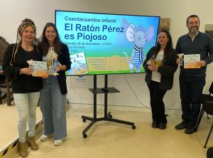 Hoy se ha presentado el cuentacuentos infantil basado en el libro ‘El ratón Pérez es piojoso’, una iniciativa de carácter solidario ideada por la odontóloga Ana Belén Ramos e ilustrada por Laura Maras, que tendrá lugar el próximo sábado, 20 de diciembre, a las 12.00 horas en la Plaza Fariñas. La recaudación íntegra por la venta del libro irá destinada a la Asociación Ascensión Cañete. En la presentación han intervenido también el alcalde, Juan Franco, y la concejal de Cultura, Raquel Ñeco.