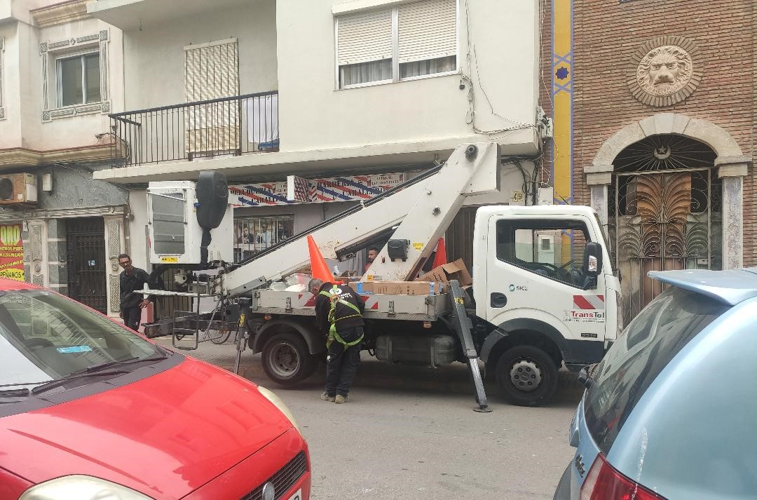 Operarios de la empresa Sice (Sociedad Ibérica de Construcciones Eléctricas S.A.), adjudicataria del contrato de servicios para la mejora de la iluminación exterior del municipio ha ejecutado la revisión y sustitución de postes de iluminación en varias zonas del municipio, como la calle Clavel, trabajos que forman parte de la programación periódica de actuaciones que se desarrolla a lo largo de todo el año.