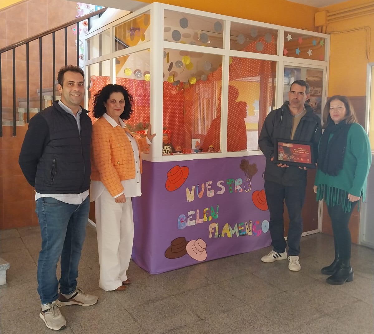 El concejal y delegado municipal de Educación, Manuel Abellán, acompañado del técnico de su concejalía, Resti Casal, ha visitado esta mañana el CEIP Santa Ana para hacerle entrega del diploma acreditativo como primer clasificado del Concurso de Belenes, incluido en la Oferta Educativa Municipal 2023/24.