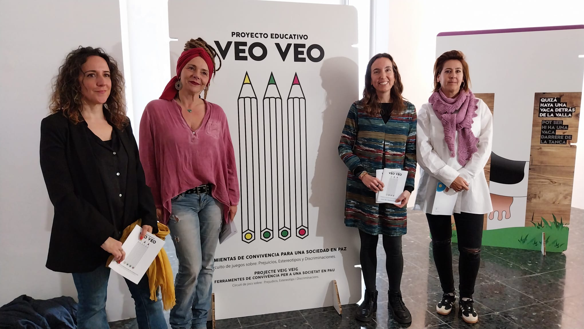 Hoy se ha inaugurado en la tercera planta de la Casa de la Cultura una exposición Veo Veo, organizada por la Asamblea de Cooperación por la Paz (ACPP). Han asistido, la responsable en Cádiz de ACPP, Ana Ruiz Giráldez; la concejal de Cultura, Raquel Ñeco; la teniente de alcalde delegada de Asuntos Sociales, Zuleica Molina, y la directora de la Casa de la Cultura, Macarena Alés.