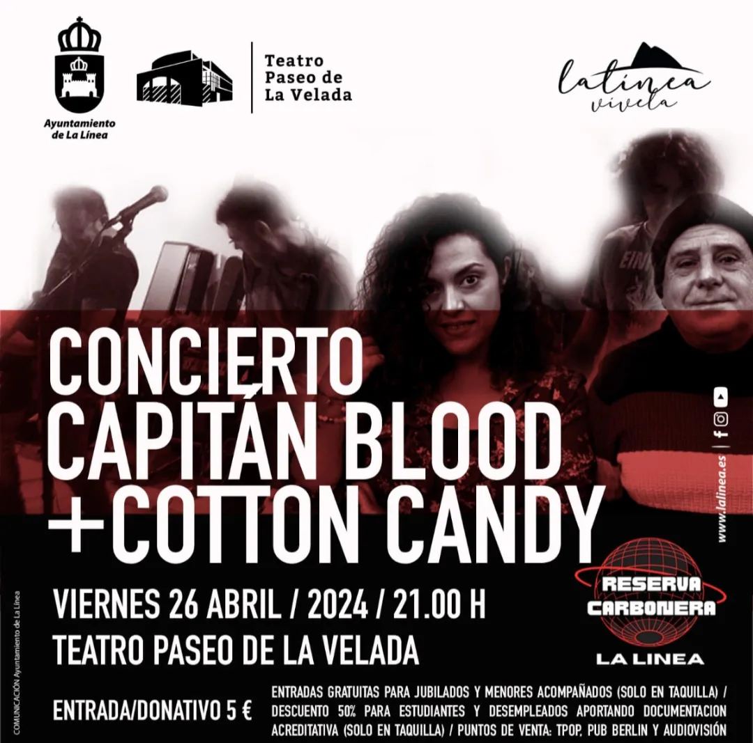 Encabeza el cartel Capitán Blood, grupo fundado en 1994 por Filu Palacios, vocalista y guitarra rítmica, acompañado en su formación actual por el batería, Javi Stany; Antonio David Míguez, al bajo, y Jose “Billy bones” como guitarra solista. El grupo encuadra su estilo en el “rock introspectivo” con letras de “silenciosa y poética rebeldía”.