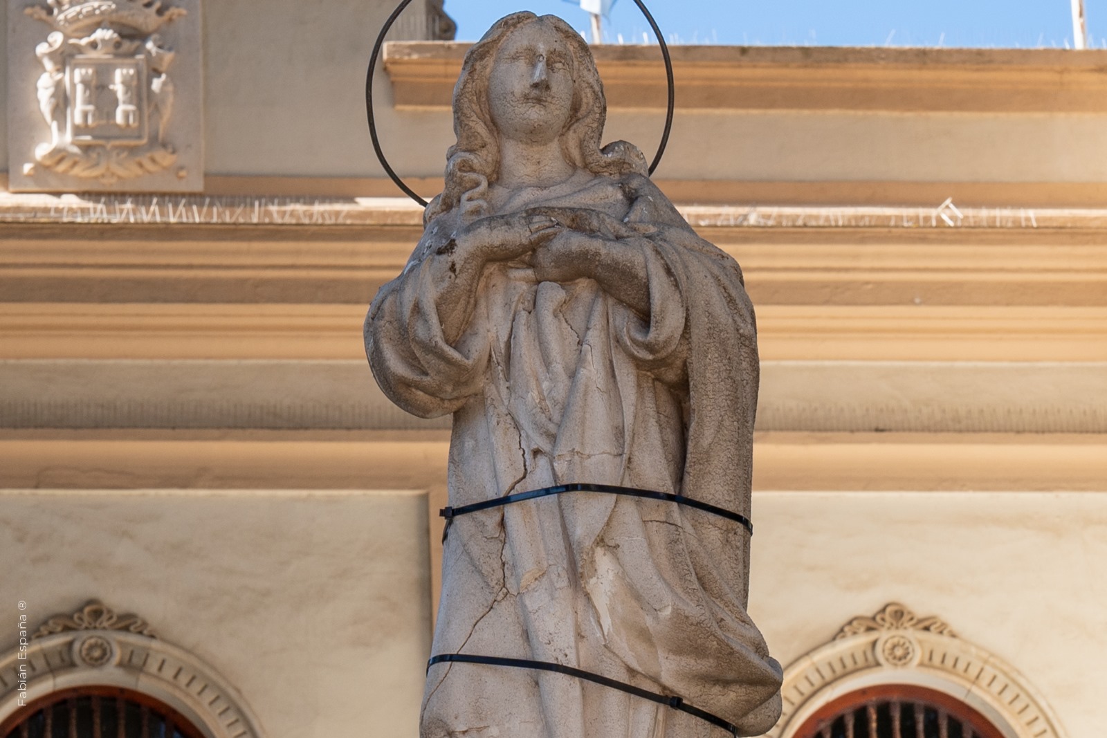 La delegación municipal de Cultura acometerá la restauración de la imagen de la Patrona de la ciudad, la Inmaculada Concepción, ubicada en los jardines Saccone. Así lo ha confirmado la concejal Raquel Ñeco, motivando la decisión por la aparición de fisuras en su estructura que aconsejan un tratamiento más específico para evitar desperfectos mayores.
