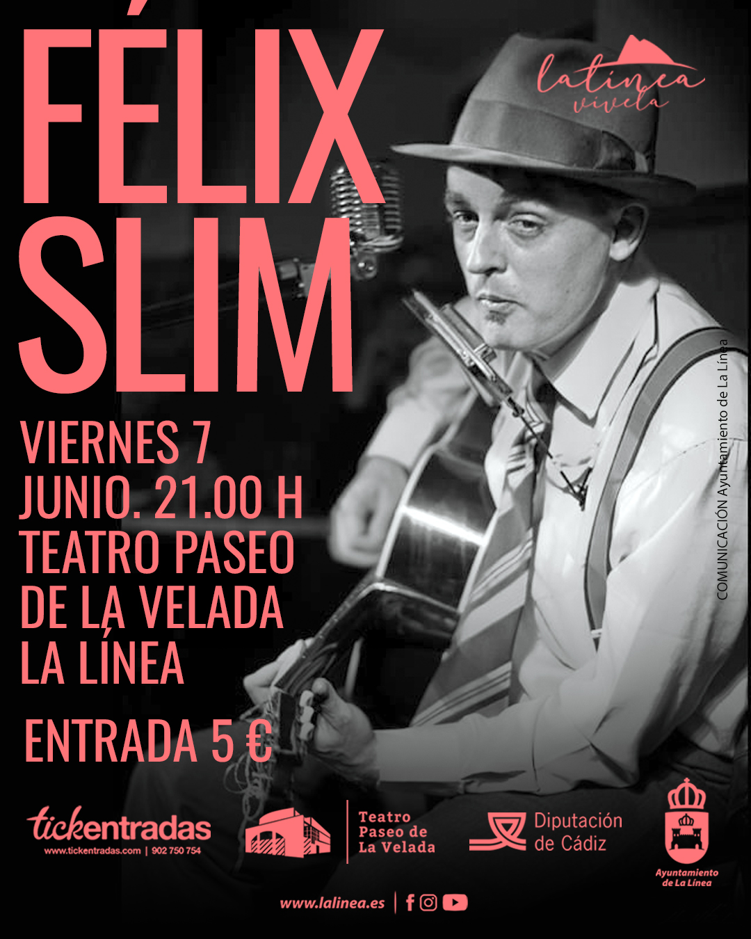 El Teatro Paseo de la Velada anuncia la actuación de Félix Slim el viernes, 7 de junio, a las 21.00 horas.Se trata de uno de los músicos de blues más destacados de España, afincado actualmente en Brooklyn, Nueva York. Multiinstrumentista, totalmente autodidacta está especializado en blues, ragtime y swing de los años 20 a 40, está influenciado por el sonido Delta, Piedmont y Texas.