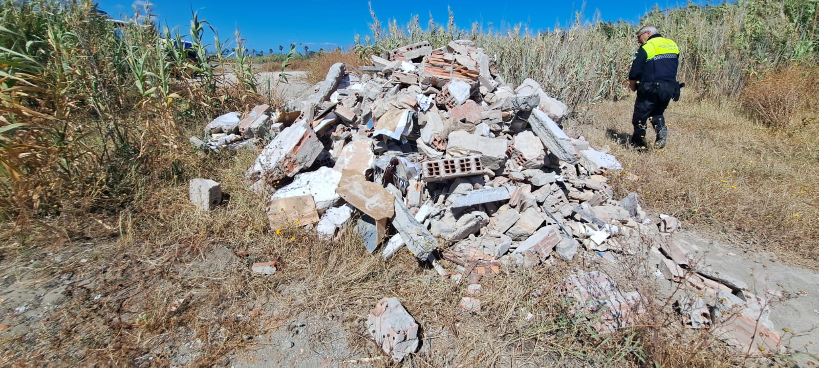La actuación de la Policía Local ha permitido localizar al autor de un vertido de escombros en el Camino de Torrenueva, en las inmediaciones del puerto pesquero de La Atunara.
